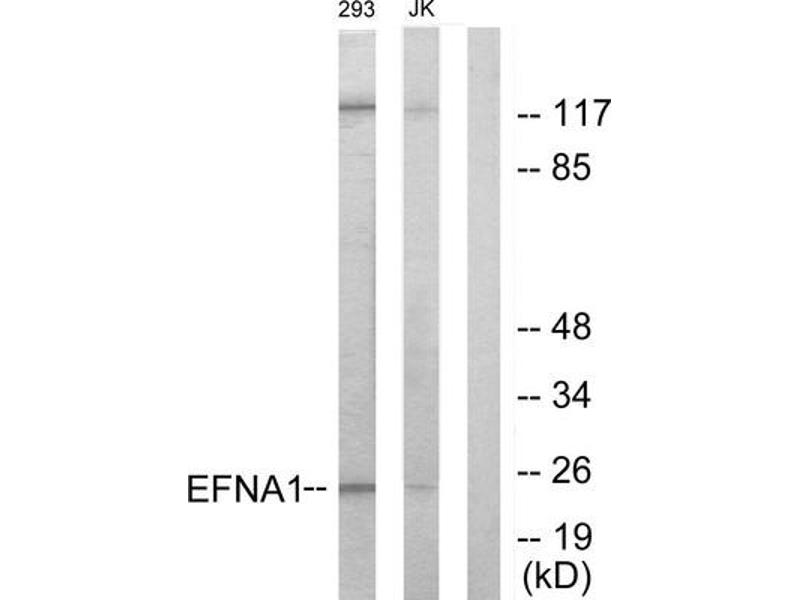 - The antiserum was produced against synthesized peptide derived from internal of human EFNA1.