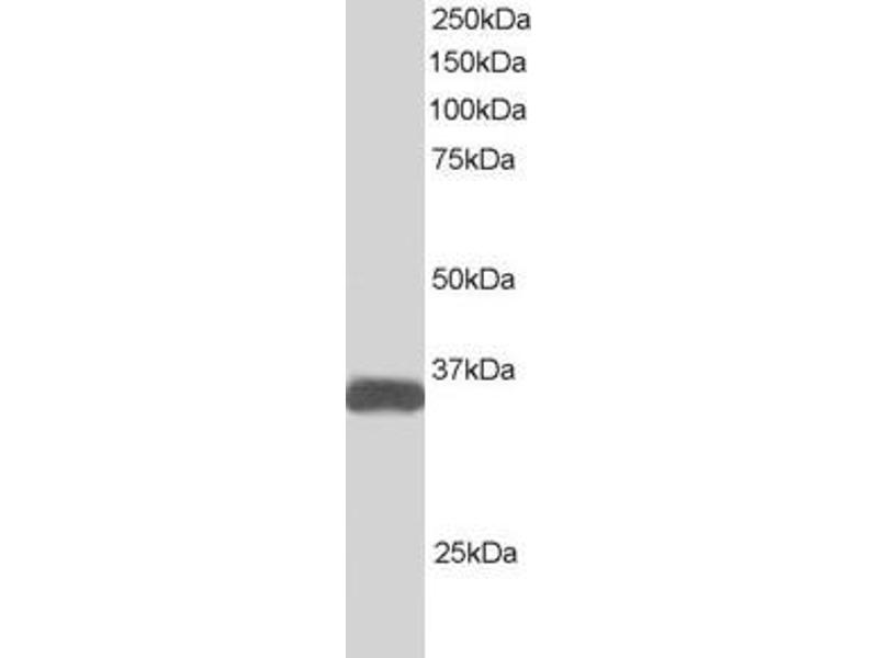 Western Blot: Approx 35 kDa band observed in Human Heart, Liver and Muscle lysates (calculated MW of 47.0 kDa according to NP_061041.2 (alpha isoform) and 31.2 kDa according to AAF71042.1 (beta isoform). In transfected HEK293 transiently expressing ILPIP a