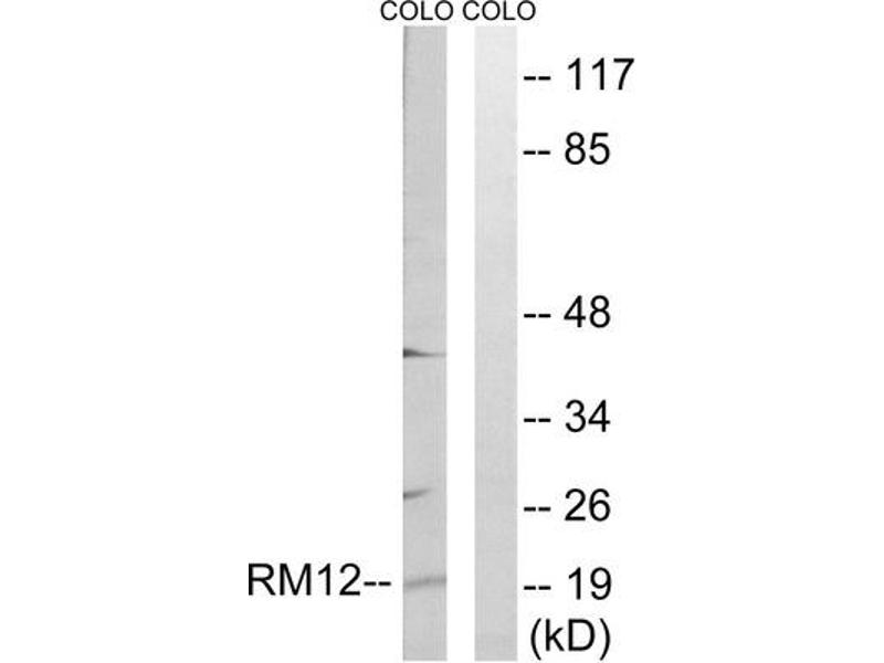 - The antiserum was produced against synthesized peptide derived from internal of human MRPL12.