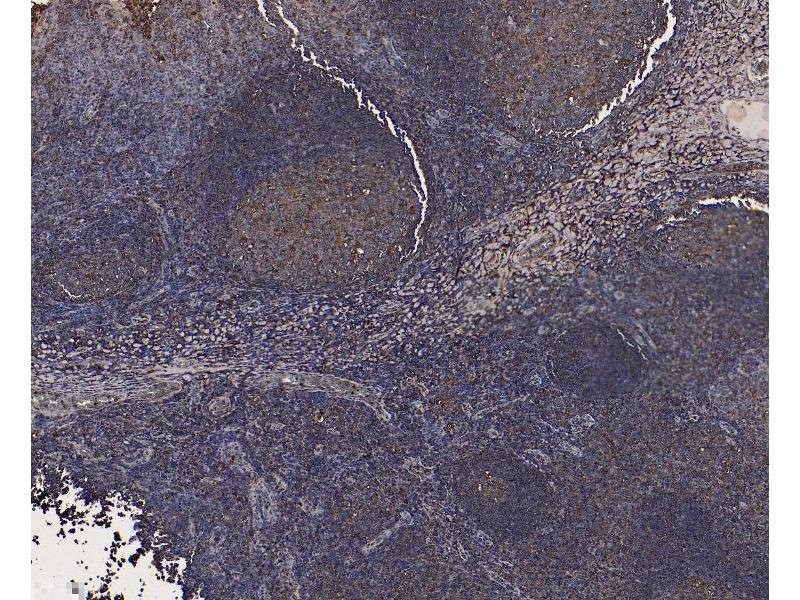 Immunohistochemistry: Paraffin embedded Human Tonsil. Recommended concentration: 6-7 μg/mL.