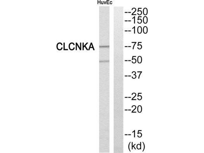 - The antiserum was produced against synthesized peptide derived from C-terminal of human CLCNKA.