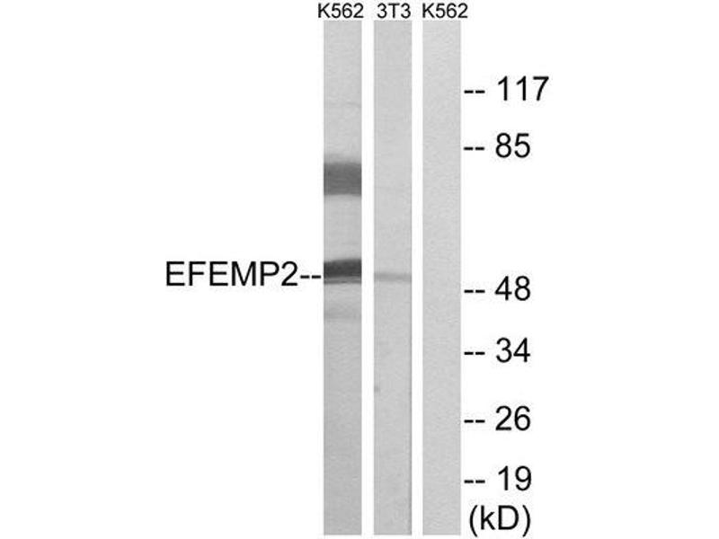 - The antiserum was produced against synthesized peptide derived from internal of human EFEMP2.