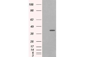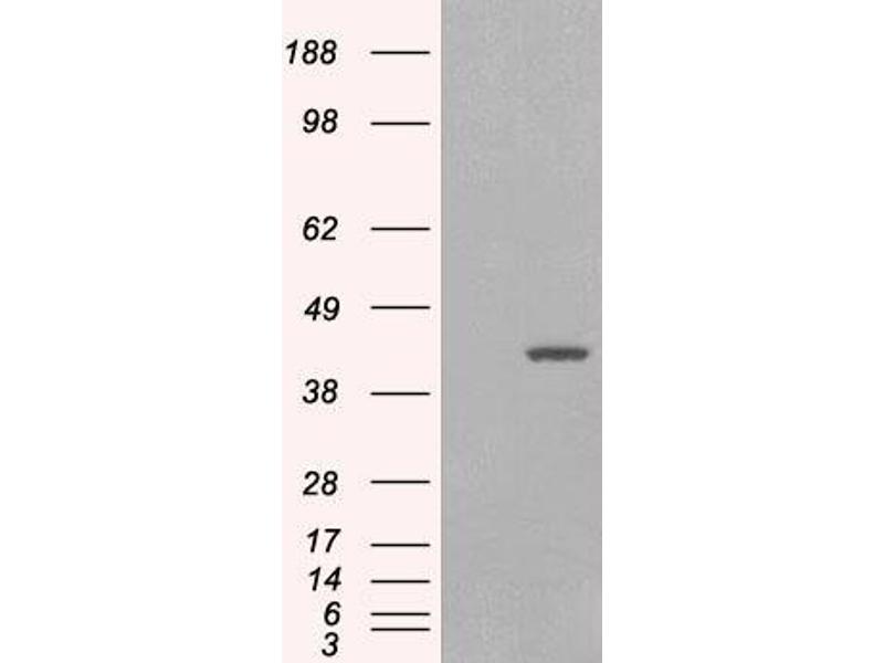 Western Blot: Approx 38 kDa and strong 23-24 kDa bands observed in lysates of cell line HeLa, and approx 24 kDa also observed in Human Pancreas, Kidney and Muscle lysates (calculated MW of 36.0 kDa according to NP_005707.1, NP_974197.1 and NP_974199.1 and 26