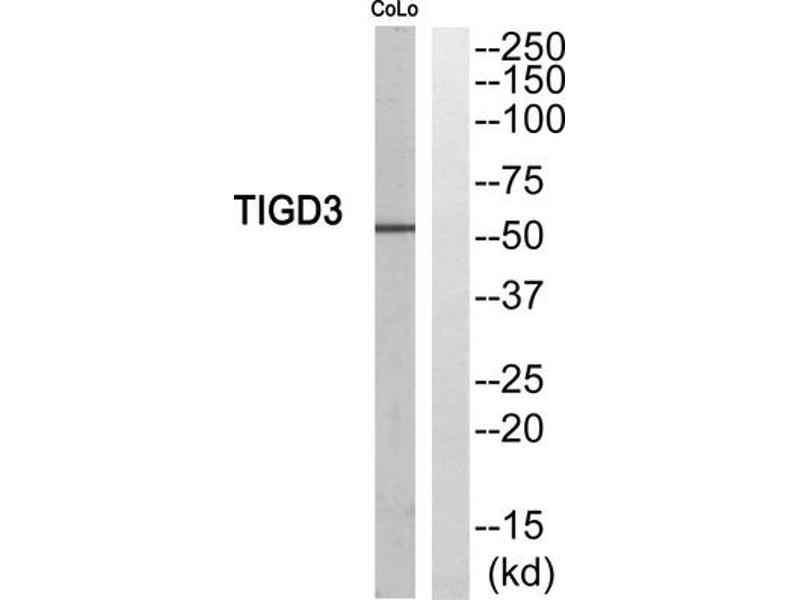 - The antiserum was produced against synthesized peptide derived from C-terminal of human TIGD3.