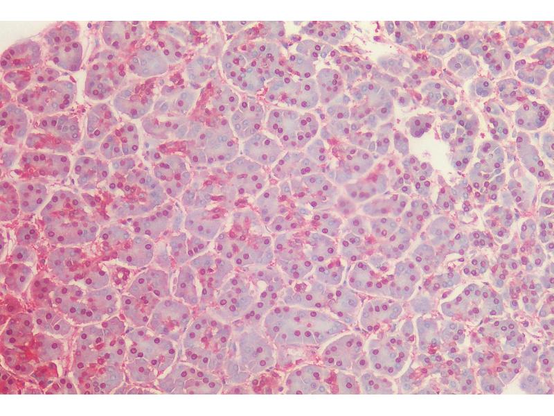 Immunohistochemistry: Paraffin embedded Human Pancreas. Recommended concentration: 2.5 μg/mL.