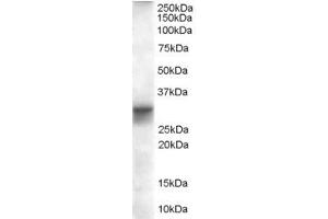 Western Blot: Approx 30 kDa band observed in Human Heart lysates is consistent with literature (PMID:10480922, calculated MW of 36.3 kDa according to AAC72886). Recommended concentration: 0.01-0.1 μg/mL.