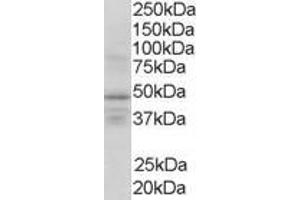 Western Blot: Approx 48 kDa band observed in Human Brain lysates (calculated MW of 50.9 kDa according to NP_008848). Recommended concentration: 1-3 μg/mL. Primary incubation was 1 hour. Some bands of unknown identity were also consistently observed around