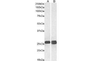 Western Blot: Approx 26 kDa band observed in Human Brain (Cerebellum) ,Mouse and Rat Brain lysates (calculated MW of 23 kDa and of 23.3 kDa according to NP_003072.2, NP_570824.1). Recommended concentration: 0.005-0.01 μg/mL. Primary incubation was 1 hour.