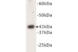 - A synthetic peptide (conjugated with KLH) corresponding to the N-terminal of Alpha-Actin.