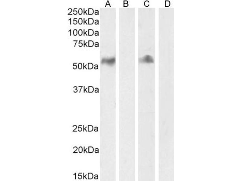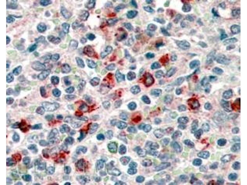 Western Blot: Approx 55 kDa band observed in Human Lymph node and Tonsil lysates (calculated MW of 40.1 kDa according to NP_000582.1).The observed molecular weight corresponds to the glycosylated form, and was successfully blocked by incubation with the im
