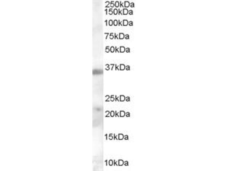 Western Blot: Approx 35 kDa band observed in lysates of cell lines A549 and HepG2 and in preliminary testing of Jurkat and U937 cell lysate (calculated MW of 33.4 kDa according to NP_116171.3). Recommended concentration:0.1-1 μg/mL. Primary incubation 1 hou