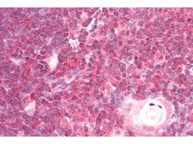 Immunohistochemistry: Paraffin embedded Human Brain (Cortex) and Thymus. Recommended concentration: 5 μg/mL.