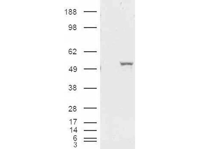 Western Blot: Approx 55 kDa band observed in Human Liver lysates (calculated MW of 54.9 kDa according to NP_000680.2). Recommended concentration: 1-3 μg/mL.