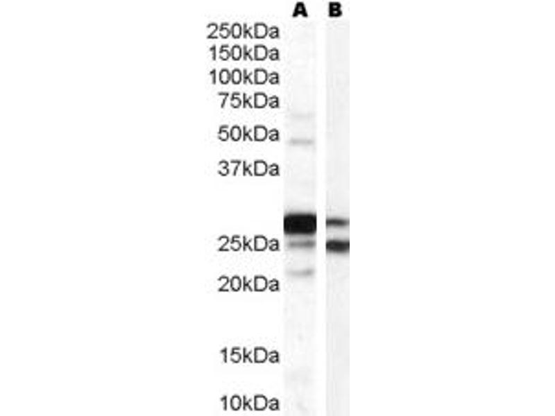 Western Blot: Approx 28 kDa band in Human Testis lysates (calculated MW of 30.0 kDa according to NP_000745.1 and 24.5 kDa according to NP_009294.1). Recommended concentration: 0.03-0.1 μg/mL.
