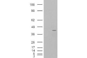 Western Blot: Approx. 38 kDa band observed in lysates of cell line Daudi (calculated MW of 39.0 kDa according to NP_000622.2 and 38.8 kDa according to NP_038202.1). In transfected HEK293 transiently expressing P40PHOX a band of approx. 42 kDa is observed. Th