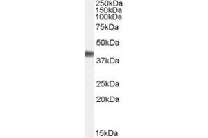 Western Blot: Approx 40 kDa band observed in Human Brain (Frontal Cortex) lysates (calculated MW of 40.8 kDa according to NP_005029.1). Recommended concentration: 0.1-0.3 μg/mL. Primary incubation was 1 hour.