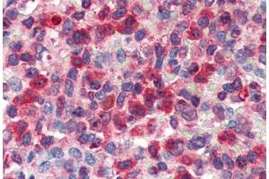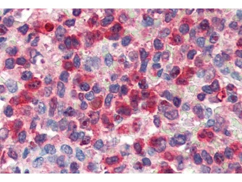 Immunohistochemistry: Paraffin embedded Human Testis and Spleen. Recommended concentration: 2.5 μg/mL.