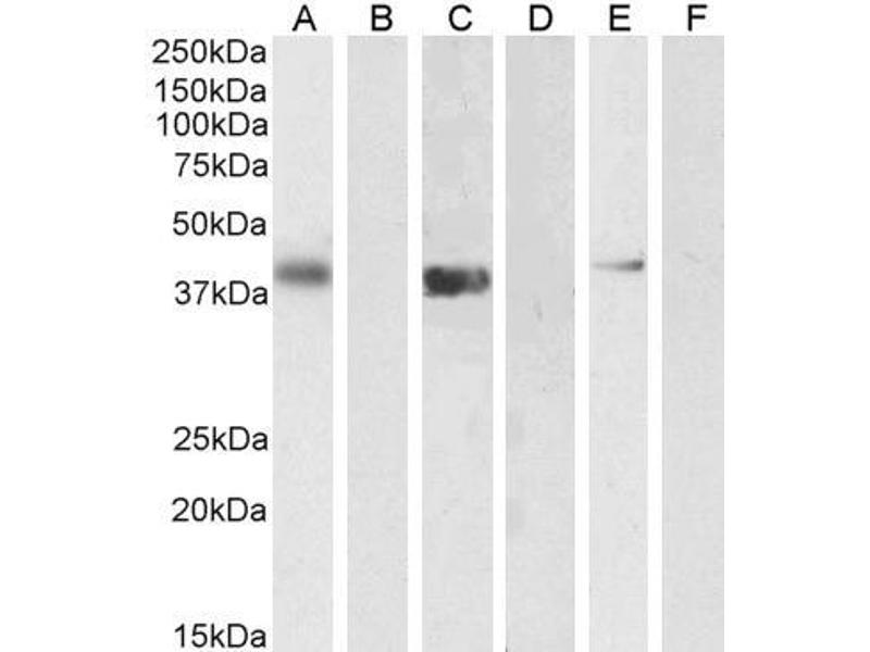 Western Blot: Approx 37 kDa observe in Human Pancreas lysates and approx.38-40 kDa in lysates of cell lines Jurkat, U2OS and NIH3T3 ,(calculated MW of 35.0 kDa according to Human NP_835455.1 and 35.2 kDa according to Mouse NP_061279.2). Recommended concentra