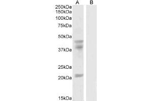 Western Blot: Approx 45+38 kDa bands observed in lysates of cell line HeLa (calculated MW of 42.5 kDa according to NP_005245.2, NP_001307844.1 and of 38.1 kDa according to NP_002032.2). An additional band of unknown identity was also consistently observed