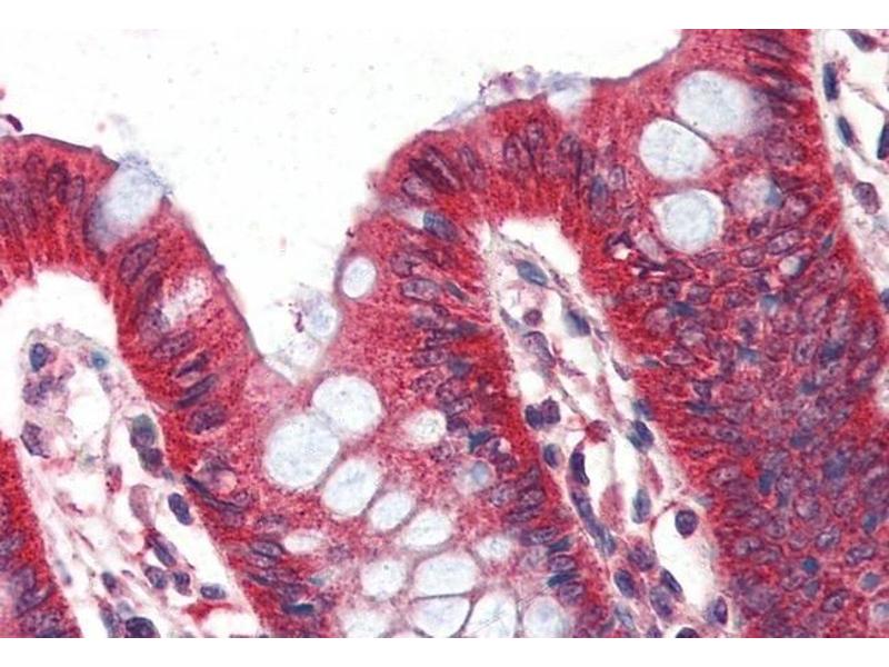 Immunohistochemistry: Paraffin embedded Human Colon. Recommended concentration: 2 μg/mL.