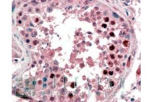 Immunohistochemistry: In paraffin embedded Human Testis shows nuclear staining in spermatogonia. Recommended concentration, 1-2 μg/mL.