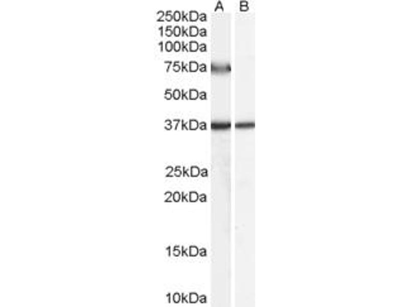 Western Blot: Approx 75 kDa band observed in Human Liver lysates (calculated MW of 76.8 kDa according to NP_003491.1). Recommended concentration: 0.5-1.5 μg/mL. An additional band of 37 kDa was consistently observed, however this band was not blocked by the