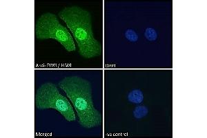 Immunofluorescence: Strong expression of the protein seen in the nuclei and cytoplasm of U2OS and HeLa cells. Recommended concentration: 10μg/ml.