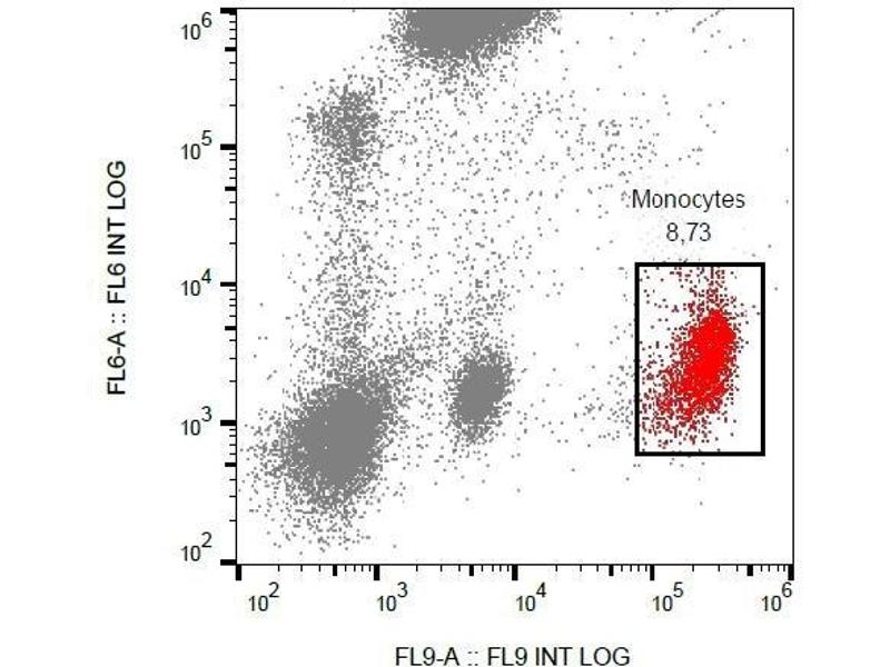 - Flow cytometry: The reagent is designed for analysis of human blood cells using 20 μL reagent / 100 μL of whole blood or 106 cells in a suspension. The content of a vial (2 ml) is sufficient for 100 tests.