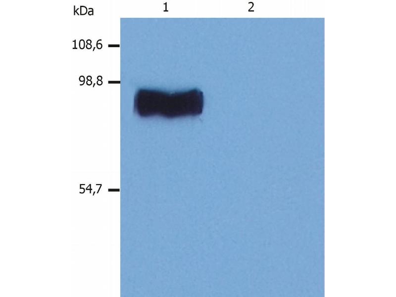 Western blotting: Recommended dilution: 1 μg/mL, positive control: RBL rat basophilic leukemia cell line, both reducing and non-reducing conditions. -