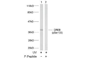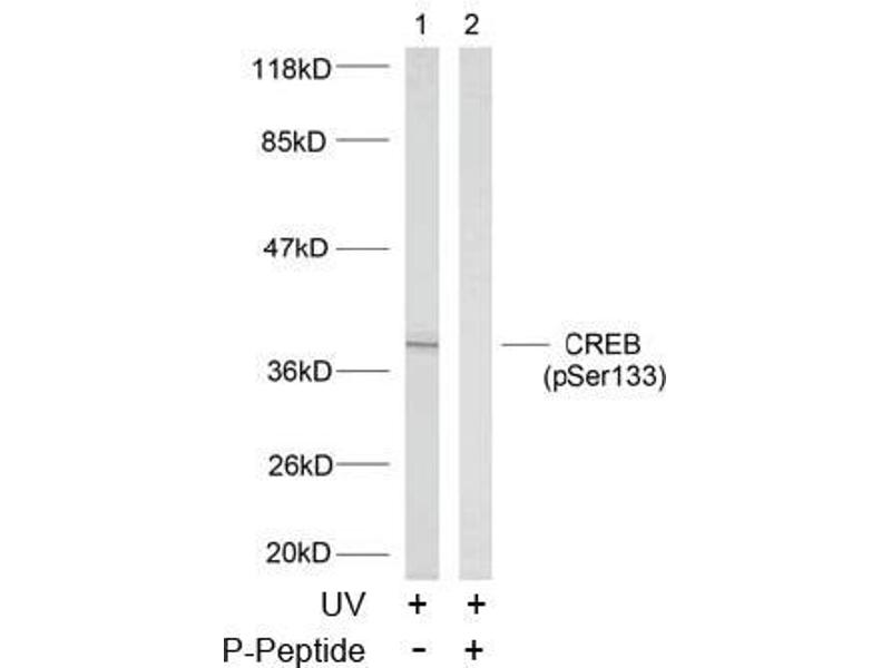 - The antibody was affinity-purified from rabbit antiserum by affinity-chromatography using epitope-specific phosphopeptide. The antibody against non-phosphopeptide was removed by chromatography using non-phosphopeptide corresponding to the phosphorylation site. CREB (phospho-Ser133) antibody detects endogenous levels of CREB only when phosphorylated at serine 133.