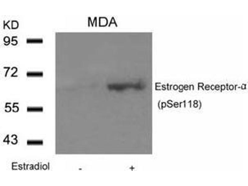 - Estrogen Receptor-alpha (phospho-Ser118) antibody detects endogenous levels of Estrogen Receptor-alpha only when phosphorylated at serine 118.