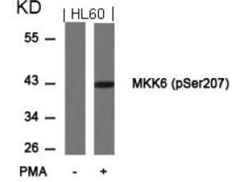 This antibody detects endogenous levels of MKK6 only when phosphorylated at serine207.