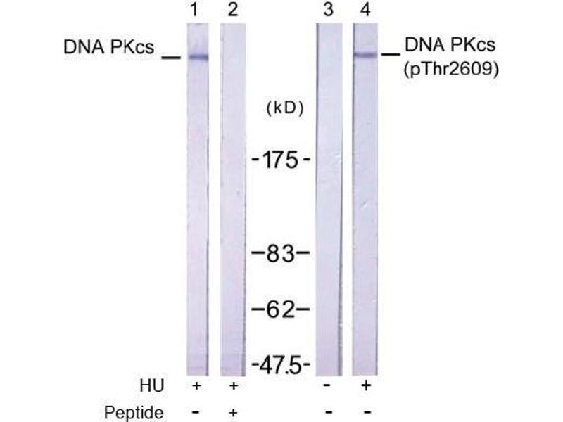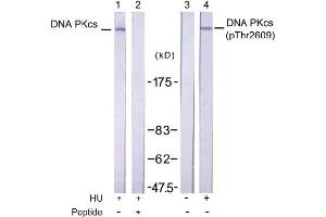 - DNA PKcs (phospho-Thr2609) antibody detects endogenous levels of DNA PKcs only when phosphorylated at threonine 2609.