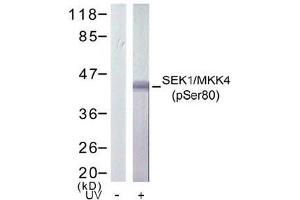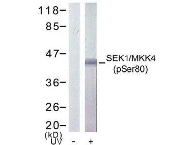 - SEK1/MKK4 (phospho-Ser80) antibody detects endogenous levels of SEK1/MKK4 only when phosphorylated at Serine 80.