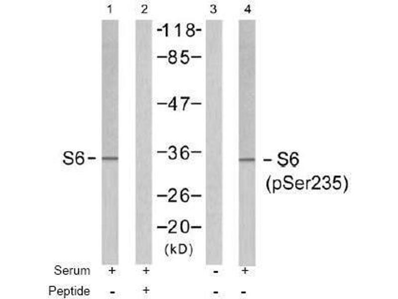 - The antiserum was produced against synthesized phosphopeptide derived from human S6 Ribosomal protein around the phosphorylation site of serine 235 (R-L-SP-S-L).