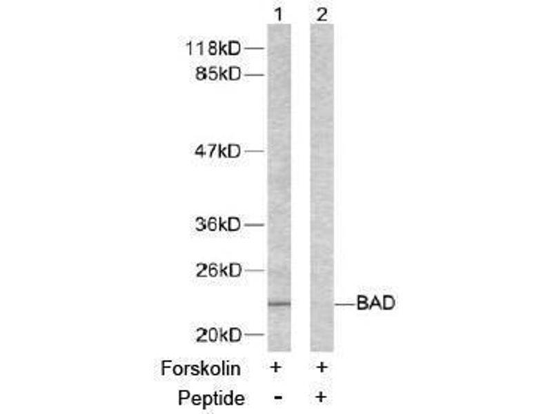 The antiserum was produced against synthesized non-phosphopeptide derived from human BAD around the phosphorylation site of serine 155 (R-M-SP-D-E).