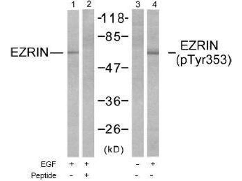 The antiserum was produced against synthesized non-phosphopeptide derived from human Ezrin around the phosphorylation site of tyrosine 353 (Q-D-YP-E-E).