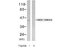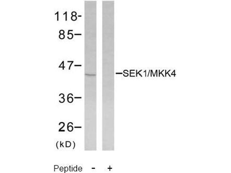 - The antibody was affinity-purified from rabbit antiserum by affinity-chromatography using epitope-specific immunogen. SEK1/MKK4 antibody detects endogenous levels of total SEK1/MKK4 protein.