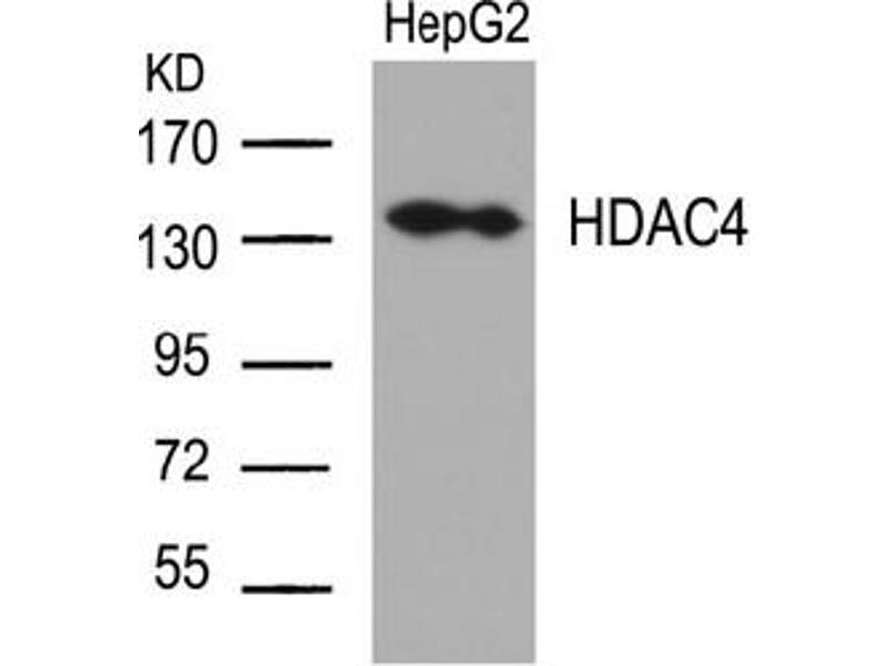 Chromatin is a highly specialized structure composed of tightly compacted chromosomal DNA. Gene expression within the nucleus is controlled, in part, by a host of protein complexes which continuously pack and unpack the chromosomal DNA. One of the known mechanisms of this packing and unpacking process involves the acetylation and deacetylation of the histone proteins comprising the nucleosomal core. Acetylated histone proteins confer accessibility of the DNA template to the transcriptional machinery for expression. Histone deacetylases (HDACs) are chromatin remodeling factors that deacetylate histone proteins and thus, may act as transcriptional repressors. HDACs are classified by their sequence homology to the yeast HDACs and there are currently 2 classes. Class I proteins are related to Rpd3 and members of class II resemble Hda1p. HDAC4 is a class II histone deacetylase containing 1084 amino acid residues. HDAC4 has been shown to interact with NCoR. HDAC4 is a member of the class II mammalian histone deacetylases, which consists of 1084 amino acid residues. Its C terminal sequence is highly similar to the deacetylase domain of yeast HDA1. HDAC4, unlike other deacetylases, shuttles between the nucleus and cytoplasm in a process involving active nuclear export. Association of HDAC4 with 14-3-3 results in sequestration of HDAC 4 protein in the cytoplasm. In the nucleus, HDAC4 associates with the myocyte enhancer factor MEF2A. Binding of HDAC4 to MEF2A results in the repression of MEF2A transcriptional activation. HDAC4 has also been shown to interact with other deacetylases such as HDAC3 as well as the corepressors NcoR and SMART.Synonyms: HD4, Histone deacetylase 4, KIAA0288