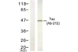 The antiserum was produced against synthesized non-phosphopeptide derived from human Tau around the phosphorylation site of threonine 212 (S-R-TP-P-S).