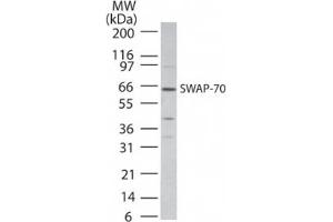- A portion of amino acids 300-350 of human SWAP-70 was used as the immunogen.