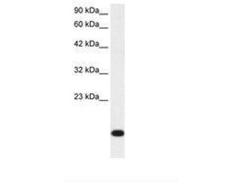 Synthetic peptide from N-Terminus of human RPS16 (NP_001011). Percent identity by BLAST analysis: Human, Chimpanzee, Gorilla, Monkey, Marmoset, Mouse, Rat, Elephant, Panda, Dog, Bovine, Bat, Rabbit, Horse, Pig, Opossum, Guinea pig, Turkey, Zebra finch, Chicken, Lizard, Xenopus, Frog, Trout, Catfish, Salmon, Smelt, Stickleback, Pike, Zebrafish (100%), Gibbon (92%), Drosophila (83%).