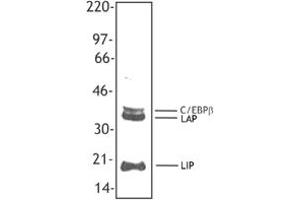 - This antibody recognizes all three isoforms C/EBP beta, LAP and LIP.