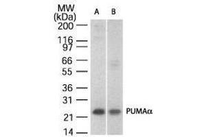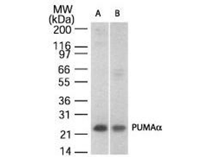 - The amino acid sequence used as immunogen is 100 % homologous in human (PUMA a and b) and 78 % homologous in mouse and rat. Human PUMA a is a 193 amino acid protein with a predicted molecular weight of approximately 22 kD. Human PUMA b is a 131 amino acid protein with a predicted molecular weight of approximately 15 kD.