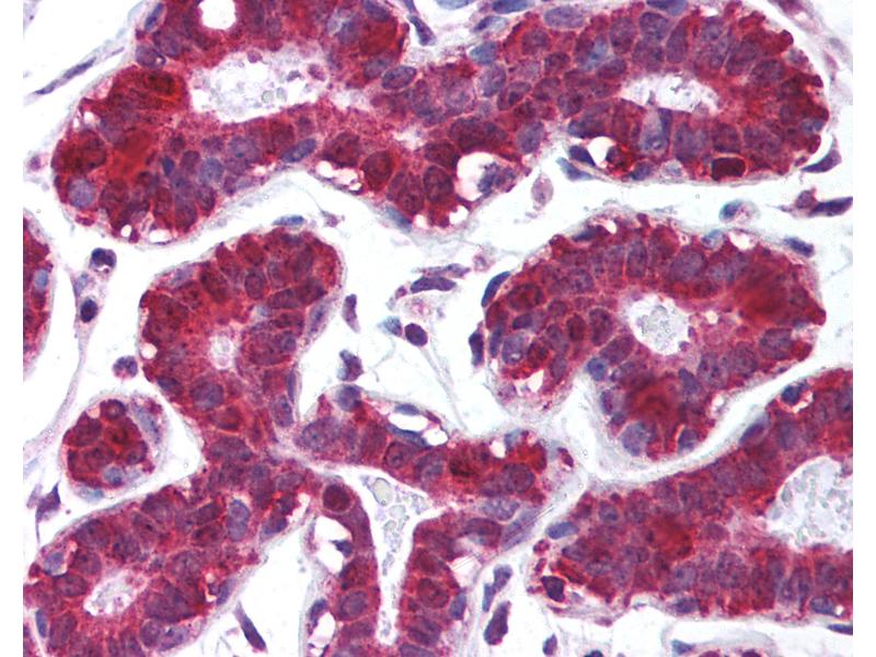Usage: Immunohistochemistry: This antibody was validated for use in immunohistochemistry on a panel of 21 formalin-fixed, paraffin-embedded (FFPE) human tissues after heat induced antigen retrieval in pH 6.0 citrate buffer. After incubation with the primary antibody, slides were incubated with biotinylated secondary antibody, followed by alkaline phosphatase-streptavidin and chromogen. The stained slides were evaluated by a pathologist to confirm staining specificity. The optimal working concentration for this antibody was determined to be 5 μg/mL. -