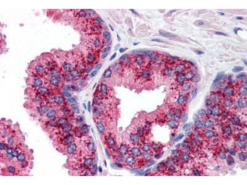 Usage: Immunohistochemistry: This antibody was validated for use in immunohistochemistry on a panel of 21 formalin-fixed, paraffin-embedded (FFPE) human tissues after heat induced antigen retrieval in pH 6.0 citrate buffer. After incubation with the primary antibody, slides were incubated with biotinylated secondary antibody, followed by alkaline phosphatase-streptavidin and chromogen. The stained slides were evaluated by a pathologist to confirm staining specificity. The optimal working concentration for this antibody was determined to be 2.5 μg/mL. -