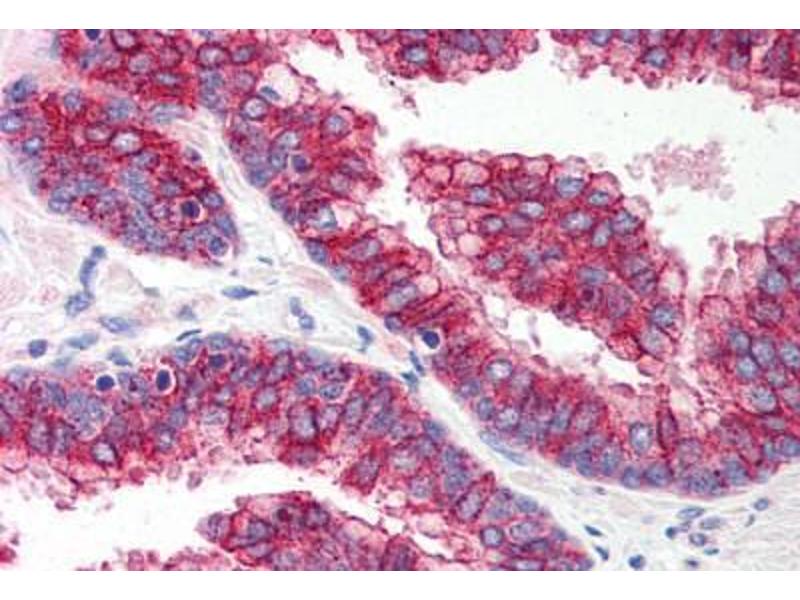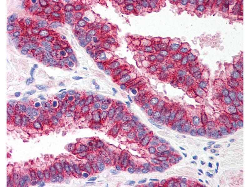 Usage: Immunohistochemistry: This antibody was validated for use in immunohistochemistry on a panel of 21 formalin-fixed, paraffin-embedded (FFPE) human tissues after heat induced antigen retrieval in pH 6.0 citrate buffer. After incubation with the primary antibody, slides were incubated with biotinylated secondary antibody, followed by alkaline phosphatase-streptavidin and chromogen. The stained slides were evaluated by a pathologist to confirm staining specificity. The optimal working concentration for this antibody was determined to be 5 μg/mL. -