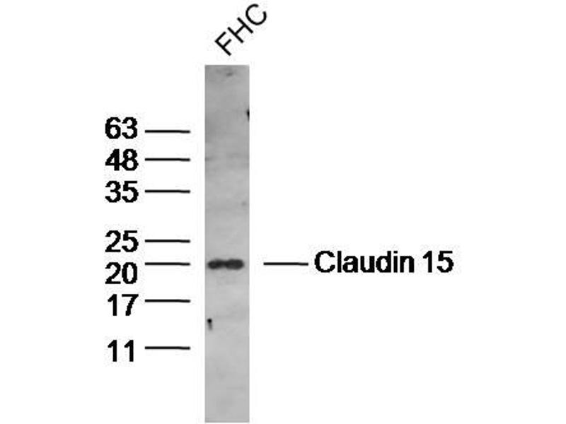 Background: The claudin superfamily consists of many structurally related proteins in humans. These proteins are important structural and functional components of tight junctions in paracellular transport. Claudins are located in both epithelial and endothelial cells in all tight junction-bearing tissues. Three classes of proteins are known to localize to tight junctions, including the claudins, Occludin and Junction adhesion molecules. Claudins, which consist of four transmembrane domains and two extracellular loops, make up tight junction strands. Claudin expression is often highly restricted to specfic regions of different tissues and may have an important role in transcellular transport through tight junctions. Claudin-15 is a 228 amino acid multi-pass membrane protein that belongs to the claudin family and plays an important role in cell-adhesion activity and tight junction-specific events.