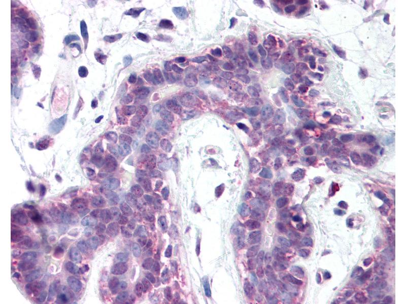 Usage: Immunohistochemistry: This antibody was validated for use in immunohistochemistry on a panel of 21 formalin-fixed, paraffin-embedded (FFPE) human tissues after heat induced antigen retrieval in pH 6.0 citrate buffer. After incubation with the primary antibody, slides were incubated with biotinylated secondary antibody, followed by alkaline phosphatase-streptavidin and chromogen. The stained slides were evaluated by a pathologist to confirm staining specificity. The optimal working concentration for this antibody was determined to be 1:100. -