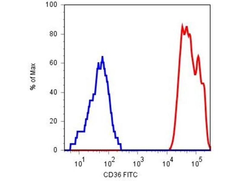- CD36 (fatty acid translocase, FAT) is an 88 kDa ditopic glycosylated protein that belongs to the class B family of scavenger receptors. CD36 is expressed by most resting marginal zone B cells but not by follicular and B1 B cells, and it is rapidly induced on Follicular B cells in vitro upon TLR and CD40 stimulation. CD36 does not affect the development of B cells, but modulates both primary and secondary antibody response. Similarly to glucose transporter GLUT4, CD36 is translocated from intracellular pools to the plasma membrane following cell stimulation by insulin. In mouse, CD36 is responsible for gustatory perception of long-chain fatty acids.Synonyms: Fatty acid translocase, GP3B, GP4, Glycoprotein IIIb, PAS IV, PAS-4, Platelet collagen receptor, Platelet glycoprotein 4, Platelet glycoprotein IV, Thrombospondin receptor